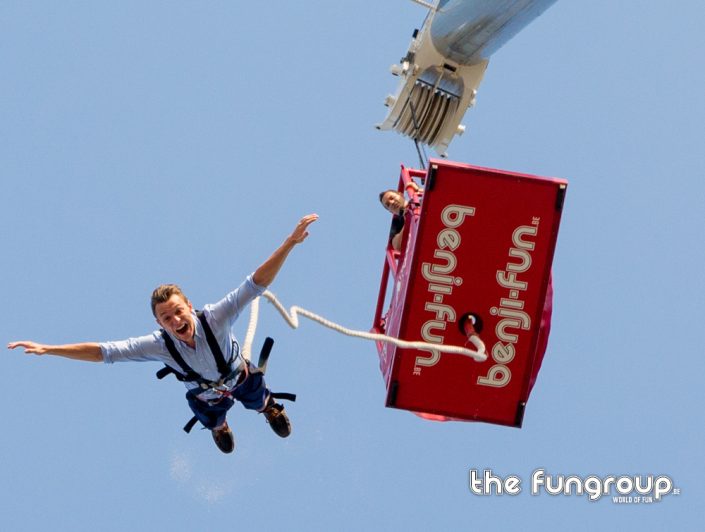 Met de Extreme Kraanattracties van Benji-Fun giert de adrenaline gegarandeerd door je lijf. De meest bekende is ongetwijfeld onze Benji-Jump voor echte bungee jump fanaten. Op deze spraakmakende attractie heeft Benji-Fun oneindig veel varianten gemaakt. Al deze attracties worden uitgevoerd op een hoogte van ca. 60m en zijn op z’n minst ultraspectaculair te noemen. Do you want some action on your event? Heb dan het lef en kom onze meest spraakmakende attracties huren.