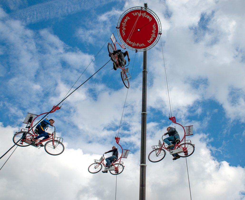 Afgelopen maand september waren we vereerd om onze gloednieuwe kraanattractie Sky-Bikes voor te stellen aan de pers. Met deze attractie pakt The Fungroup weer uit met een zeer unieke belevenis.