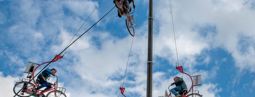 4 deelnemers kunnen in competitie met de Sky-Bikes, beveiligd in een veiligheidsharnas, naar een ongekende hoogte van 50m fietsen in competitieverband. Beleving en vrijheid staan centraal met deze nieuwe attractie. Voor organisatoren zijn de Sky-Bikes ook de ultieme attractie met personalisatiemogelijkheden op de Sky-Bikes zelf en een publiciteitszeil in de ronde trussconstructie.