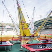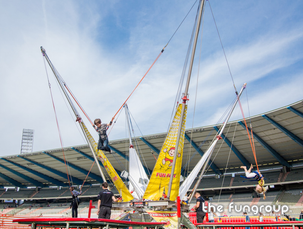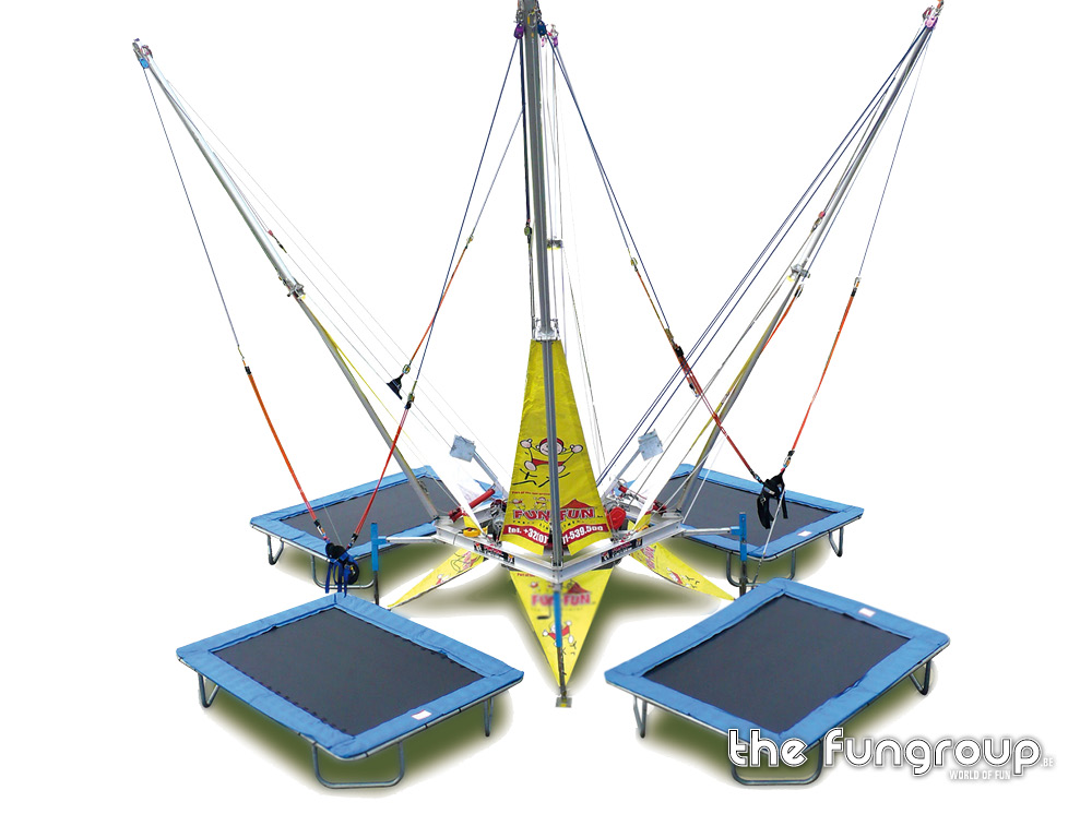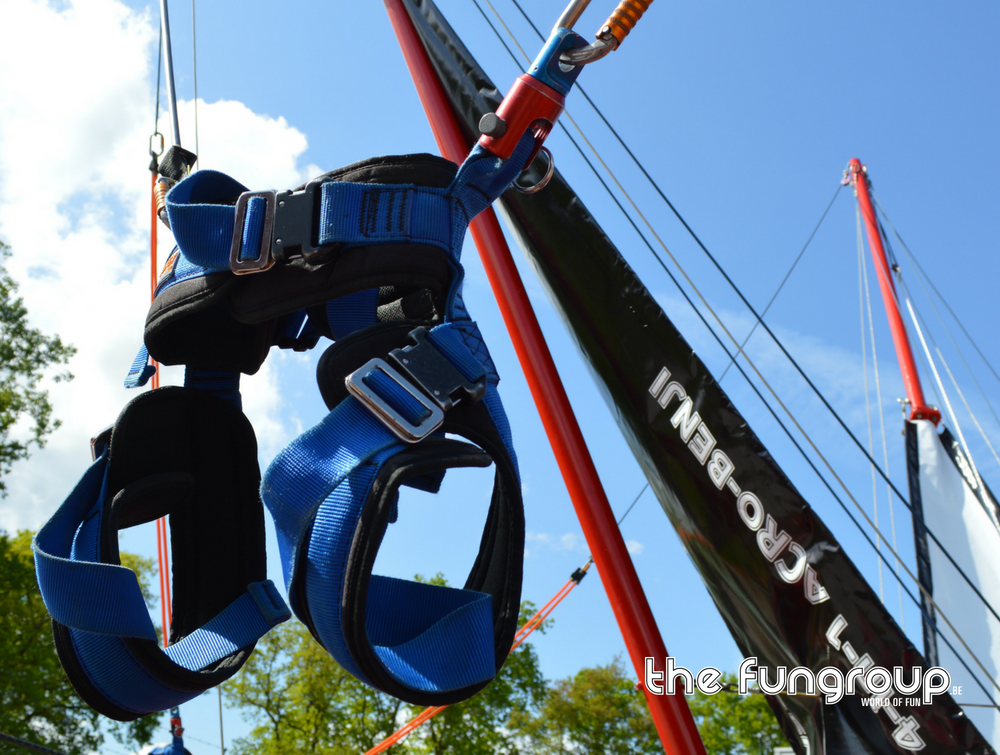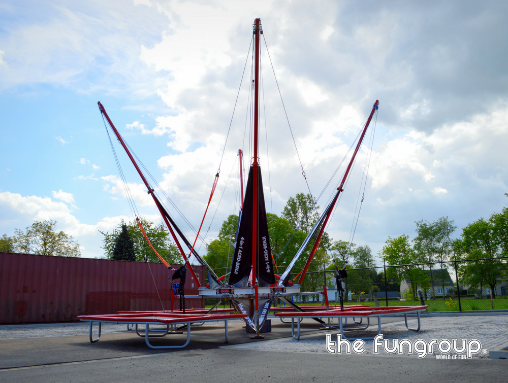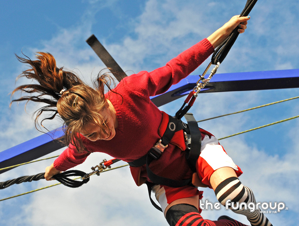 Op deze mobiele 4-in-1 Acro-Benji kan je met 4 springers tegelijk acrobatische kunstjes uithalen op de trampolines. Onze professionele medewerkers maken je vast aan twee elastieken waardoor je tot een hoogte van maar liefst 9 meter kan springen. Plezier verzekerd voor alle deelnemers!