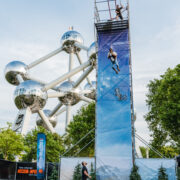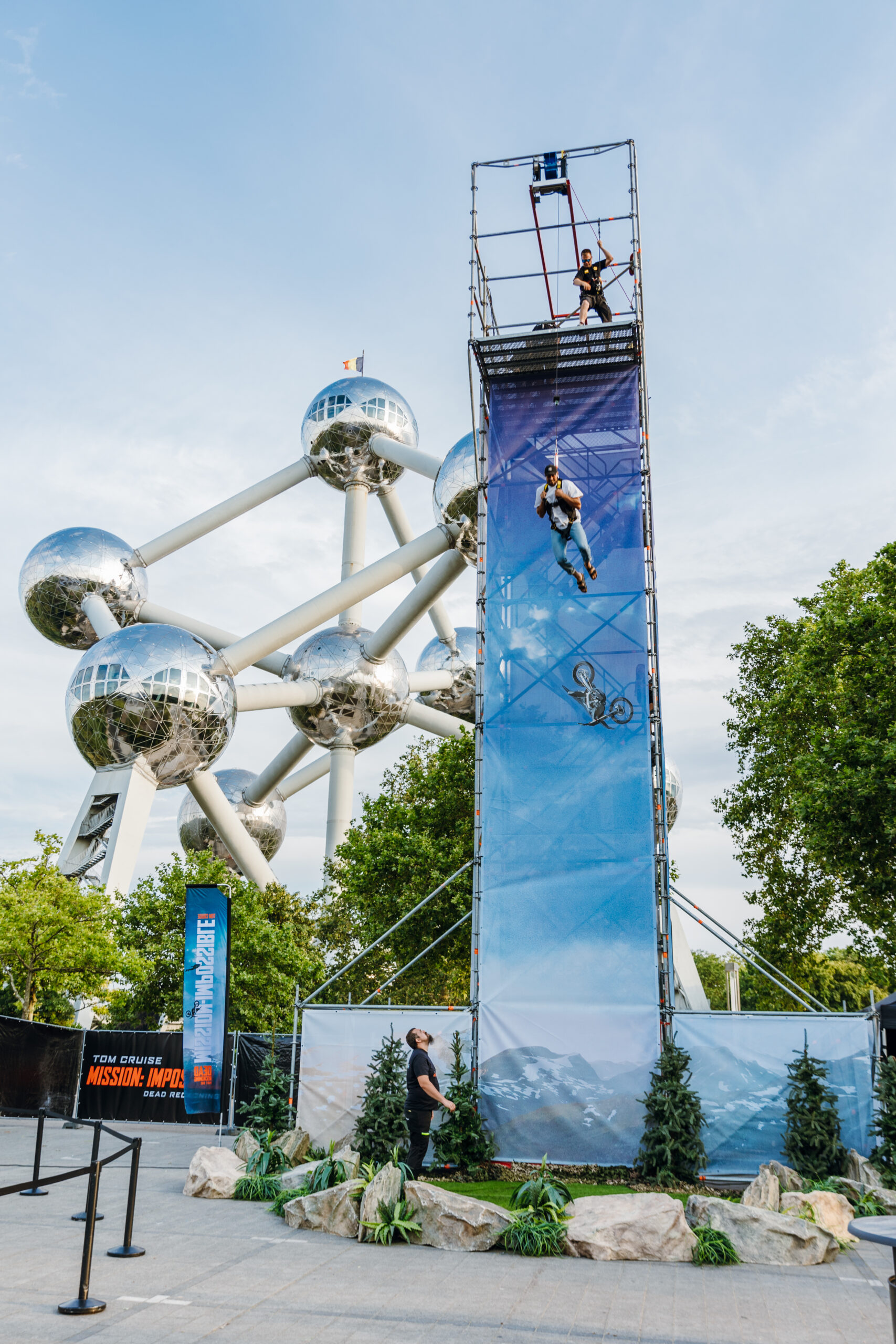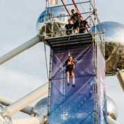 Wat dit evenement extra bijzonder maakte, was de locatie: onze Sky-Fall was strategisch opgesteld naast het iconische Atomium in Brussel. De indrukwekkende setting zorgde ervoor dat bezoekers niet alleen de kick van de val konden beleven, maar ook konden genieten van een prachtig uitzicht over de stad, wat de hele ervaring nog onvergetelijker maakte. Het historische monument creëerde een visueel spektakel dat perfect paste bij de kracht van de film.