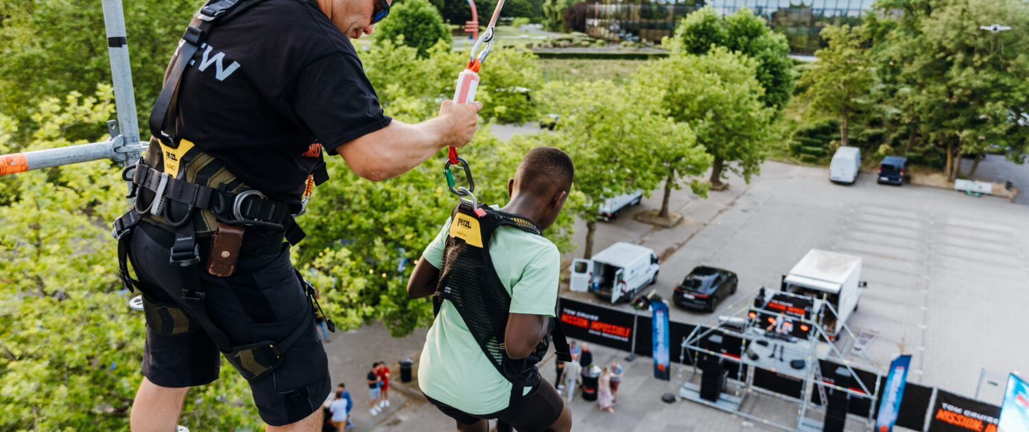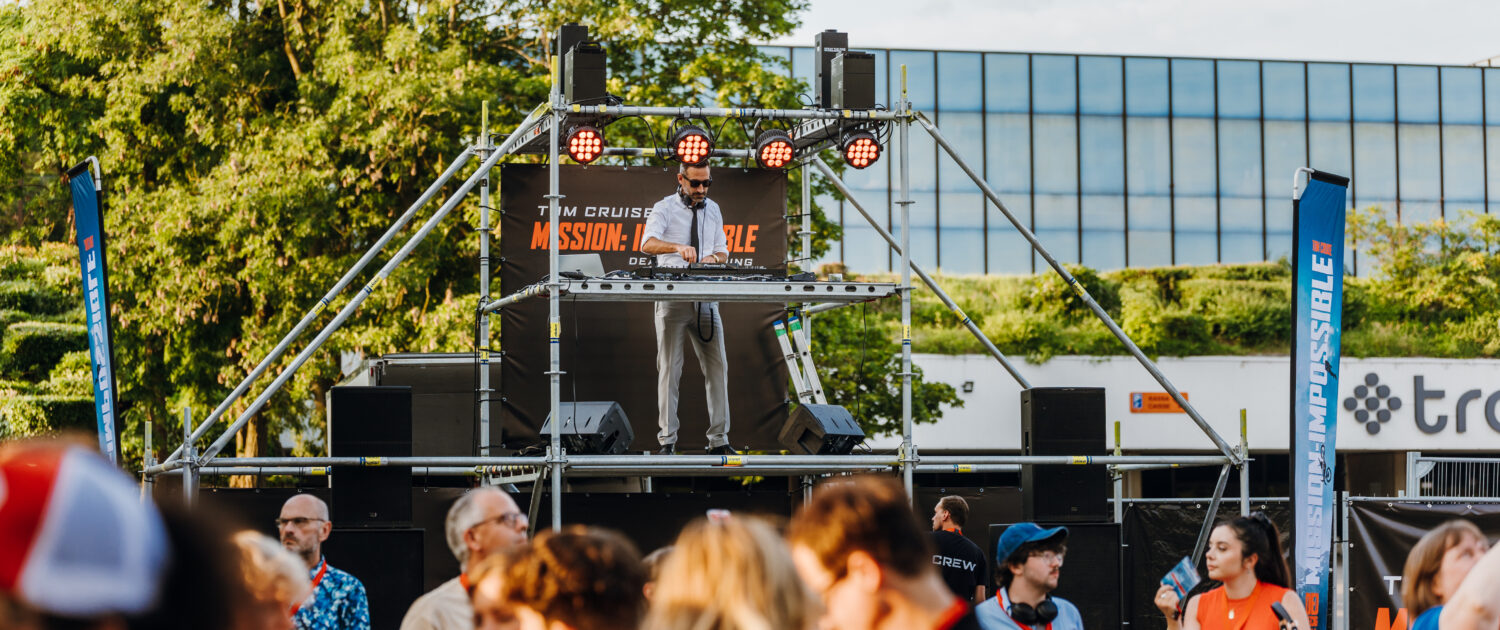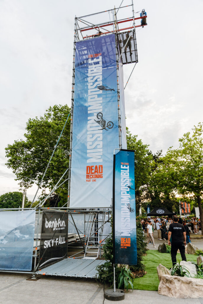 Tijdens de spectaculaire première van de nieuwste Mission: Impossible-film hadden we de eer om bij te dragen aan dit grootschalige evenement met onze Sky-Fall attractie. Deze unieke attractie, een 16 meter hoge Layherconstructie, trok onmiddellijk de aandacht van alle aanwezigen.