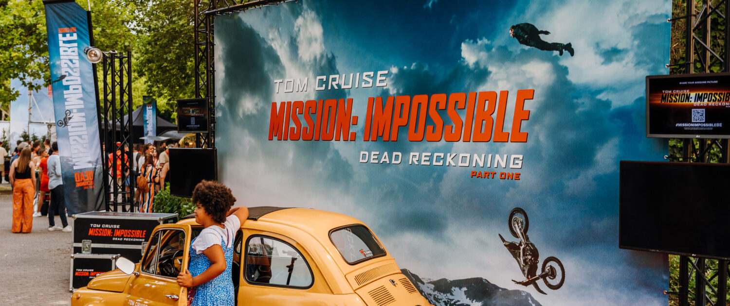 Om het evenement nog verder te versterken, hebben we de volledige Sky-Fall attractie gepersonaliseerd. De branding en het design waren helemaal in lijn met het Mission: Impossible-thema, wat zorgde voor een complete en meeslepende beleving voor de bezoekers.