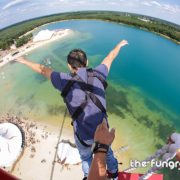 Beveiligd aan een harnas, beenbinders en elastiek, spring je onder professionele begeleiding naar beneden. Een speciaal ontworpen luchtkussen, een veiligheidsnet of springen boven water dragen bij aan een veilige landing. Springen kan solo of duo (op speciale aanvraag). Al onze materialen voldoen aan de EU-wetgeving. Veiligheid staat bij ons op de eerste plaats.