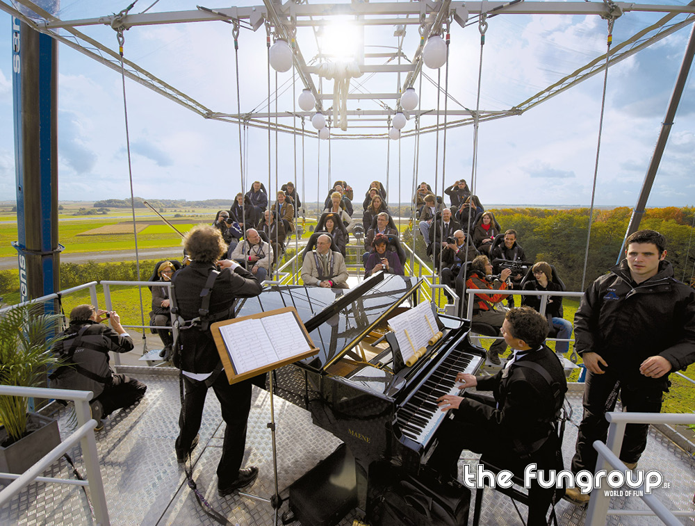 Al ooit een concert, huwelijk of meeting bijgewoond op 50m hoogte? Concert/Marriage/Meeting in the Sky biedt de mogelijkheid om op een unieke locatie een uitzonderlijke ervaring te beleven. De constructie van Concert in the Sky heeft een theateropstelling met een capaciteit van 30 personen. Bij Marriage in the Sky zullen 20 gasten getuige zijn van een huwelijk, waarna het getrouwd koppel ter bezegeling van het huwelijk samen door middel van een elastiek 50m naar beneden kan springen.