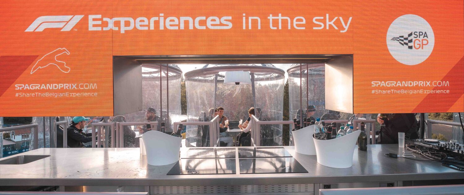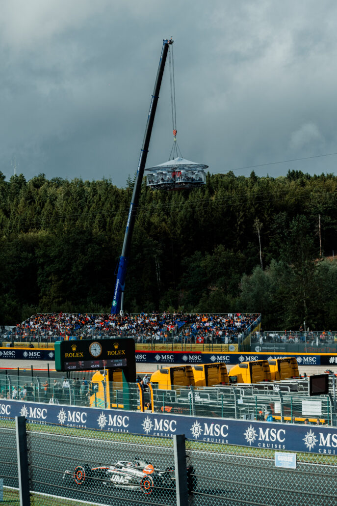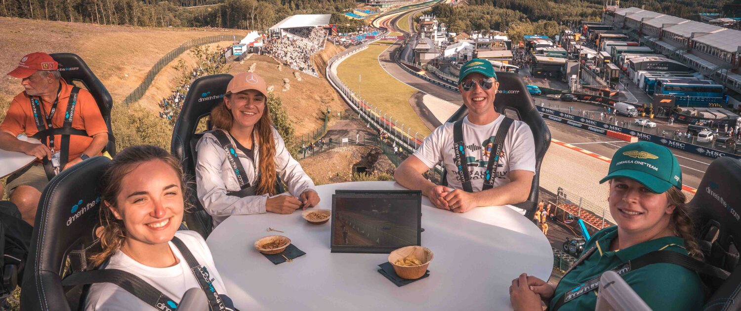 Tijdens de Formule 1 van Spa-Francorchamps hebben we bezoekers een unieke ervaring geboden met ons “Dinner in the Sky 2.0” platform. Vanaf een hoogte van 50 meter kregen gasten de kans om de spectaculaire race bij één van de scherpe bochten op het legendarische circuit te aanschouwen. Terwijl de auto’s onder hen door scheurden, konden de bezoekers genieten van een hapje en een drankje in een onvergetelijke setting.