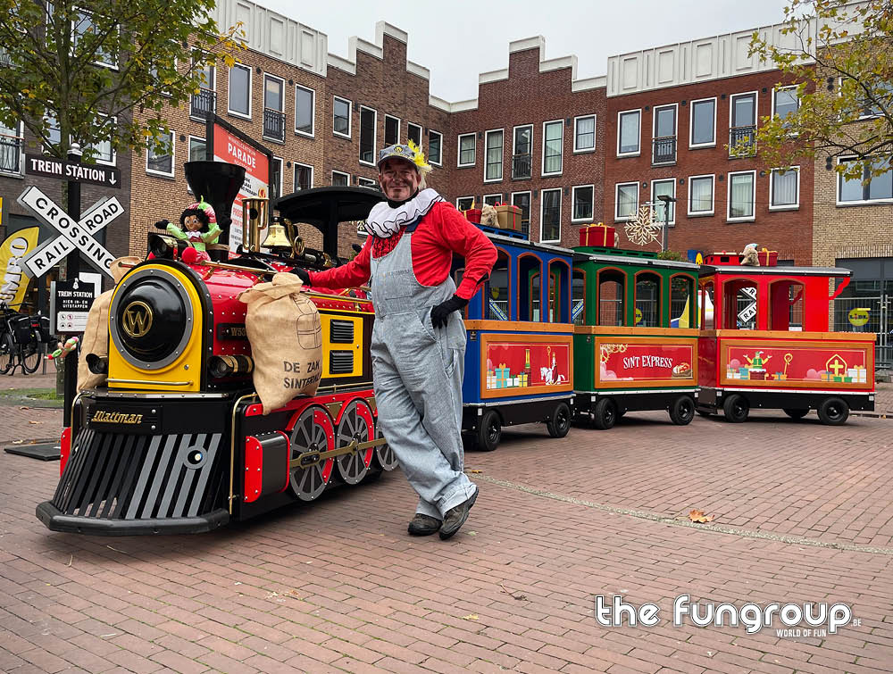 Je bent opzoek naar een echte publiekstrekker voor je evenement, winkelcentrum, woonboulevard, open dag, bedrijfsevenement, kinderevenement of familiedag? De kindertrein trekt gegarandeerd de aandacht tijdens iedere gelegenheid! De prachtige locomotief van de Mini Express Kindertrein is uitgerust met levensechte treingeluiden en er komt zelfs rook uit de schoorsteen. In de wagonnetjes is gezellige kindermuziek te horen en de vrolijke machinist zorgt voor alleen maar blije gezichten op je evenement.