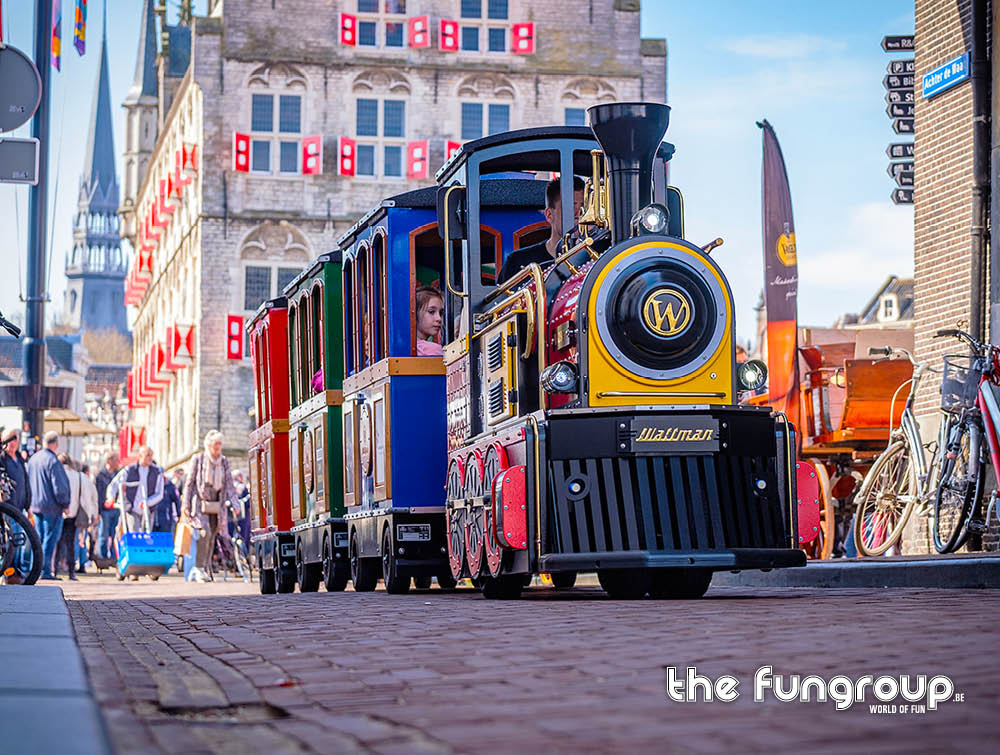 Huur onze originele Wattman Mini Express elektrische trein met machinist!