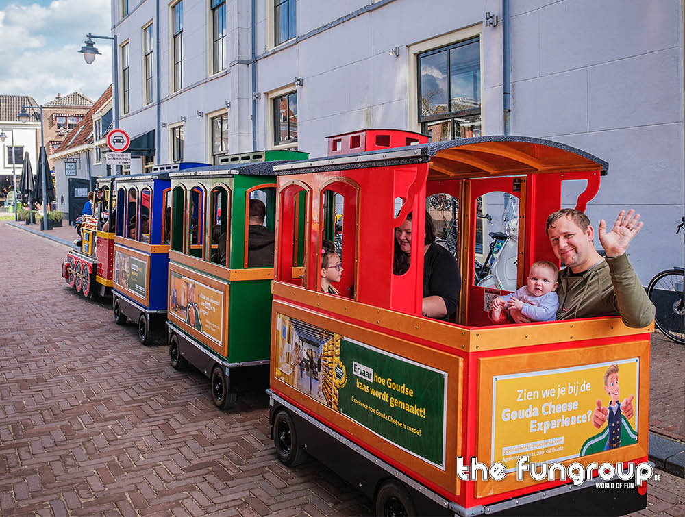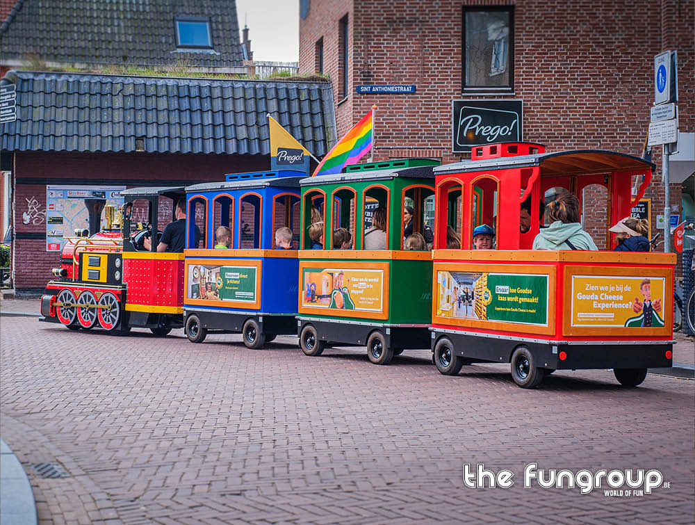De Kindertrein is uitermate geschikt als rijdend reclame object! De wagons kunnen namelijk worden voorzien van reclame borden met jouw logo of reclameboodschap. De elektrische kindertrein volledig gepersonaliseerd met je eigen reclame is daarom een absolute blikvanger tijdens een openbedrijvendag, bedrijfsfeest of in een winkelcentrum. Naast de opvallende reclameborden kunnen we er ook voor zorgen dat tijdens de rit jouw reclameboodschap wordt afgespeeld via de ingebouwde geluidsinstallatie. Nieuwsgierig naar alle mogelijkheden om de kindertrein in te zetten met jouw reclame? Neem vrijblijvend contact met ons op voor meer informatie.