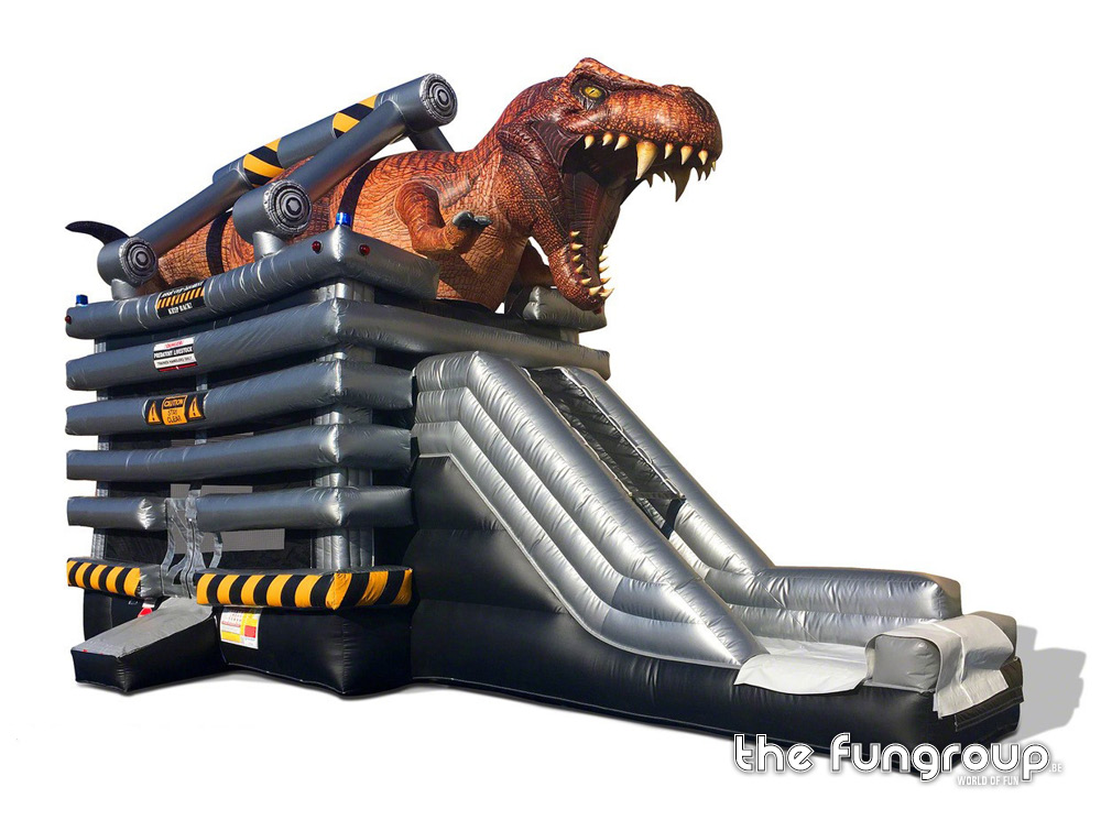 De T-Rex is iets voor de kinderen die de stoerheid zelve zijn! In dit schrikwekkende springkasteel betreden jouw kids de kooi van een T-Rex. Ze verlaten de kooi met de T-Rex die op hun hielen zit. Sensatie alom!